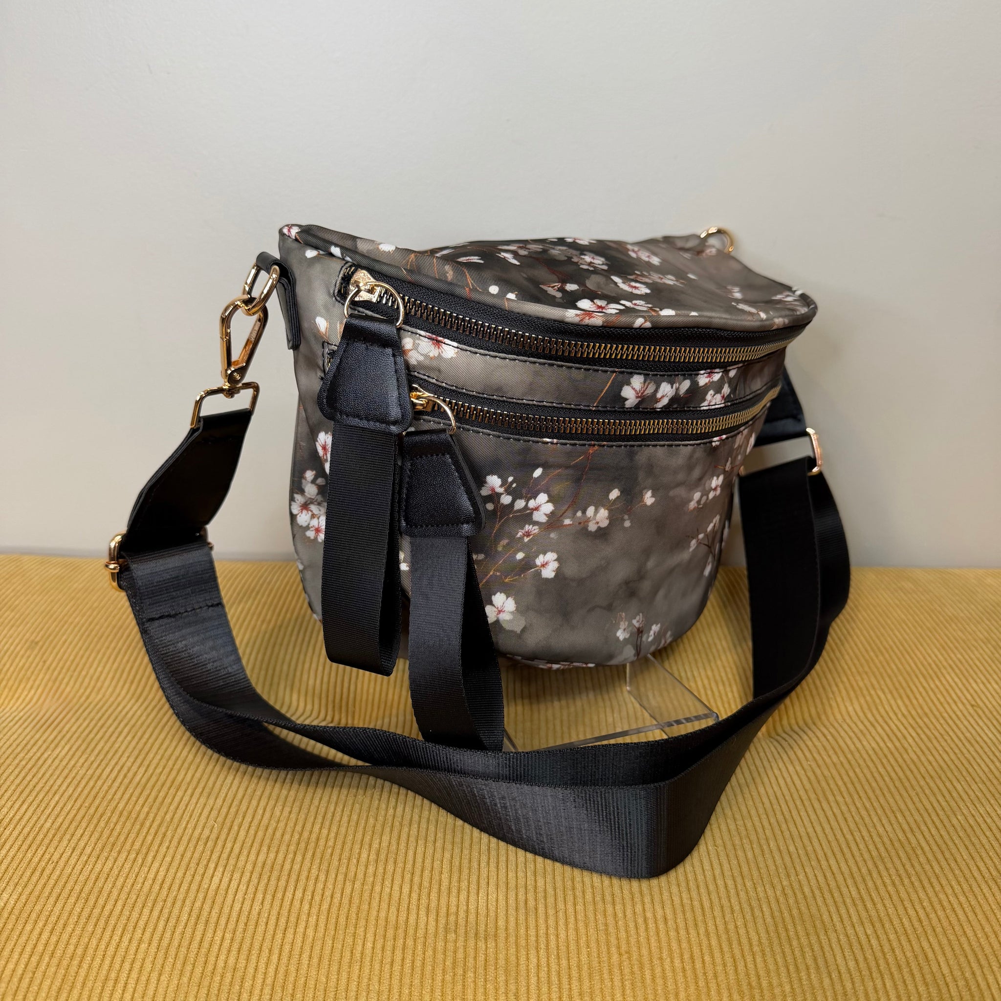 The Roni Nylon Crossbody - Grey Cherry Blossom