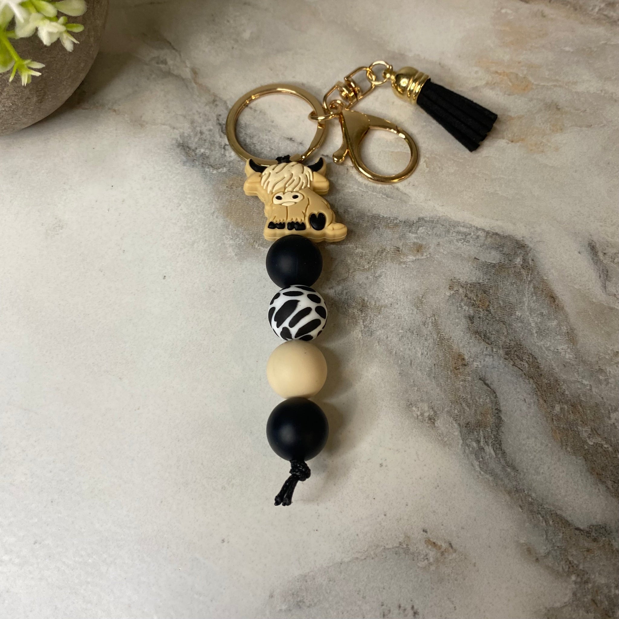 Keychain - Silicone Bead - Highland Cow - Black